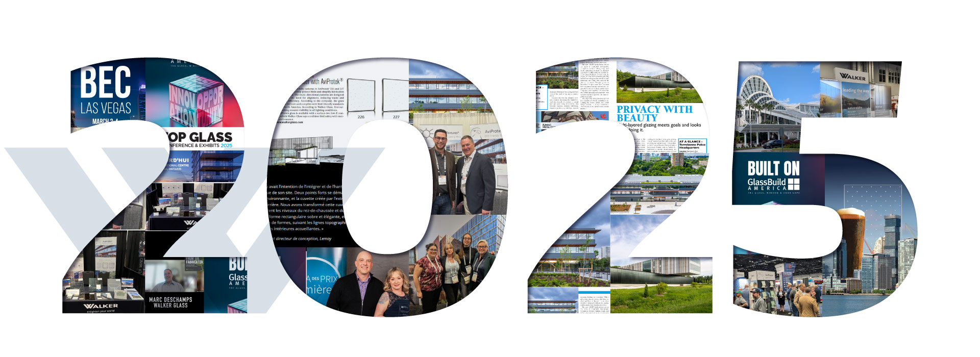 L’équipe Marketing de La Verrerie Walker travaille fort pour vous offrir les meilleures nouvelles et les ressources les plus informatives tout au long de l’année, et nous ne pourrions jamais accomplir tout cela seuls. MERCI à tous nos partenaires de l’industrie qui ont organisé les salons et divers événements, mis en lumière des nouvelles importantes, contribué aux articles sur les projets, et qui, de manière générale, ont aidé à faire de 2025 une année exceptionnelle.
